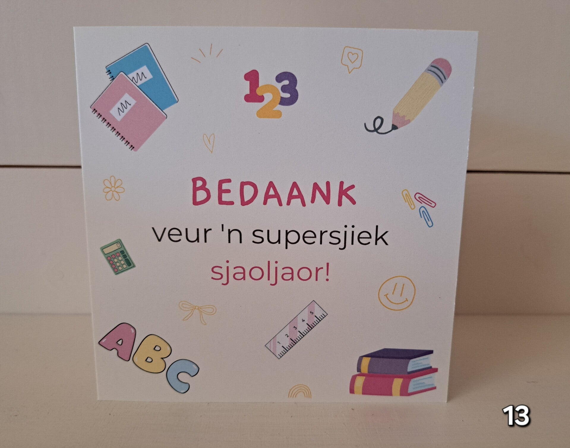 In 't opmerkingeveld (gans achteraon bij 't tabblaad Bevestiging) kins diech aongeve welke 5 kaarte 't mage weure. De nommers vaan de kaarte stoon op de foto's en in de besjrijving. De kaarte die geine foto vaan de binnekant höbbe, zien blanco aon de binnekant.